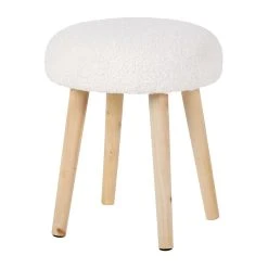 SEMA DESIGN Tabouret Bouclette Ivoire Et Bois De Pin -Element