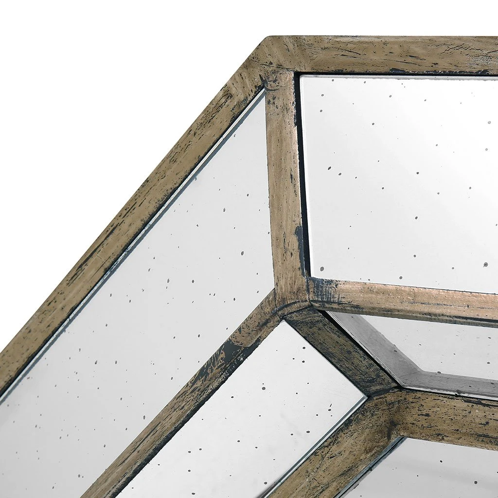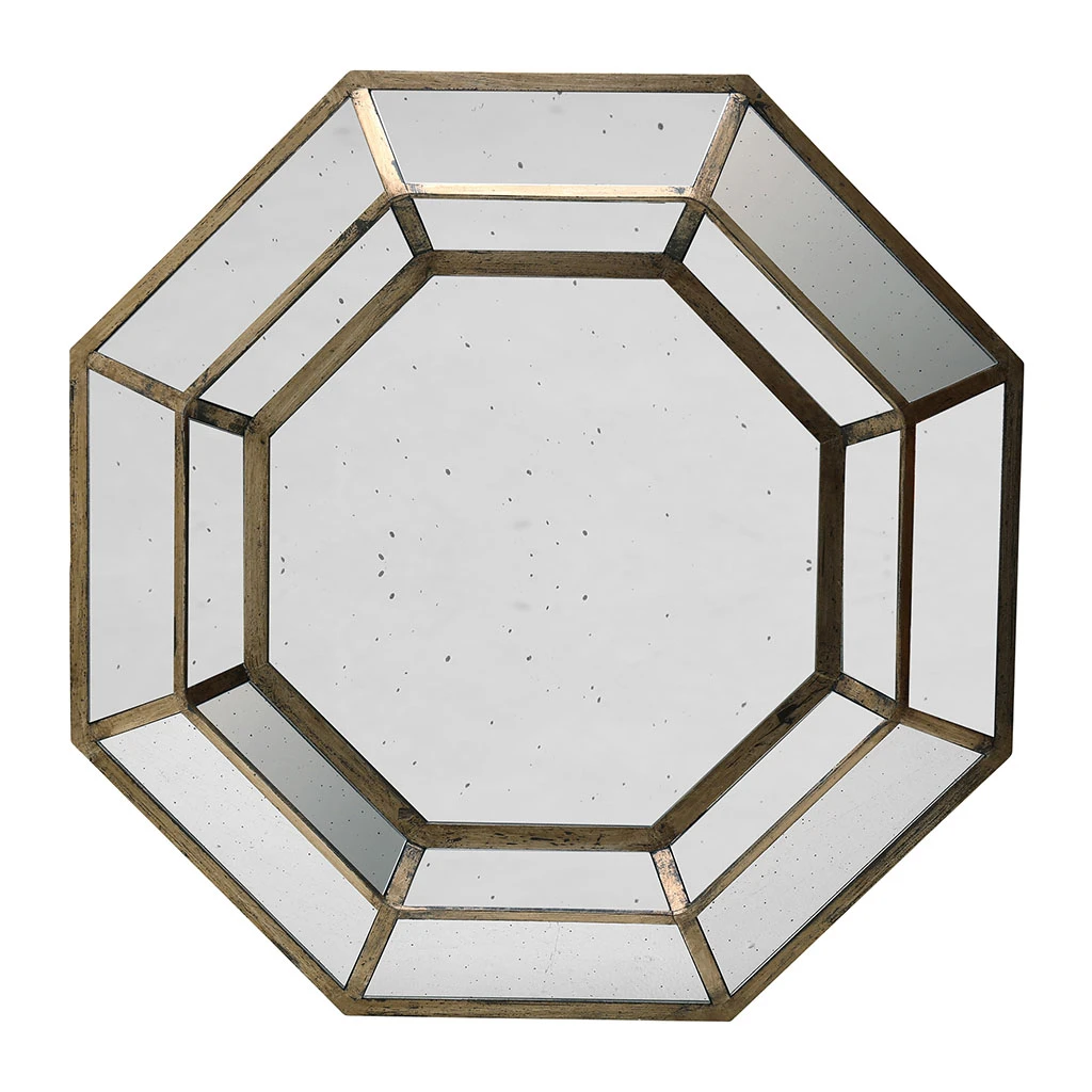 Le miroir Antique est un beau miroir octogonal aux lignes graphiques et inspirés de l’époque art déco; sa forme, en toile d’araignée est faite d’un jeu de fer couleur bronze et de métal. Le tout forme un miroir XXL dont la couleur bronze semble