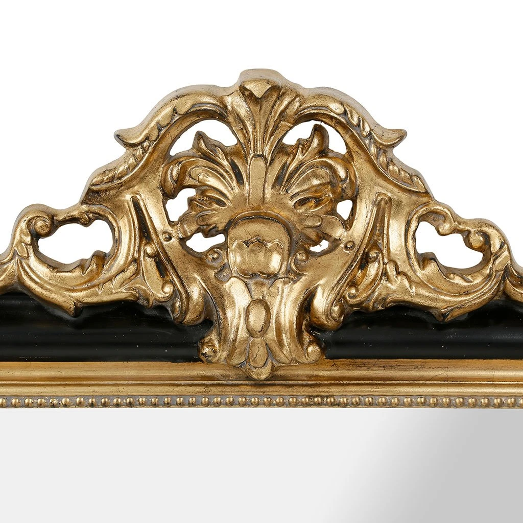 Craquez pour ce superbe miroir en bois scuplté de Comptoir de Famille; Avec le miroir Féerie, plongez dans un décor de château, de luxe et de dorures. Les couleurs Noir et Or sont ici légèrement patinées, ce qui lui donne un aspect