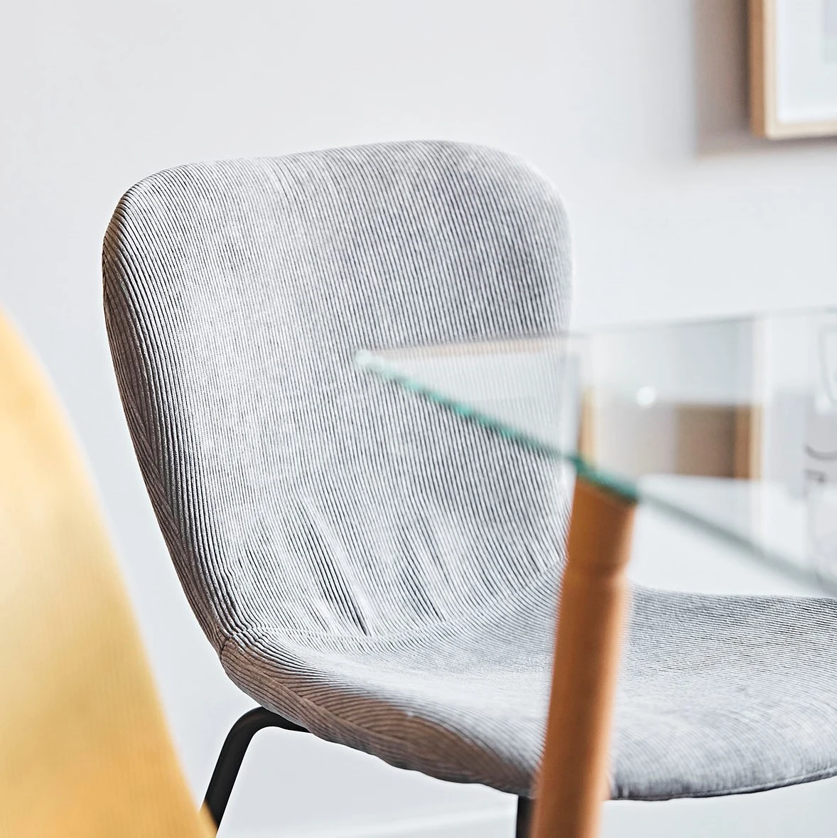 Avec ses lignes épurées et son tissu gris en velours doux, cette chaise trouvera sa place dans n’importe quelle pièce de votre maison.