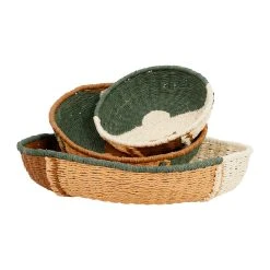SEMA DESIGN Deco Murale Ronde Panier X3 Vert, Brun Et Corail En Corde – Sweet Leaves