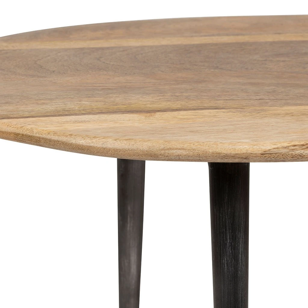 Nos tables basses gigognes exclusives Hervea présentent un plateau en bois de manguier et des pieds en métal noir.