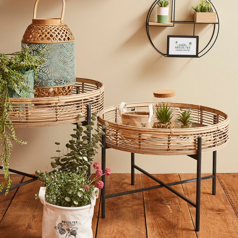 SEMA DESIGN Table Basse (lot De 2) Bambou Naturel Et Fer Noir