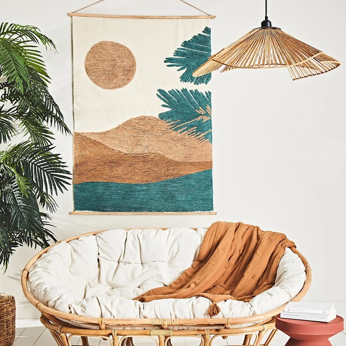 Venez découvrir notre Toile tuftee sweet leaves ecru+terra+emeraude 100x140cm coton+manguier de la marque SEMA Design à découvrir sur Fabrique de Styles.