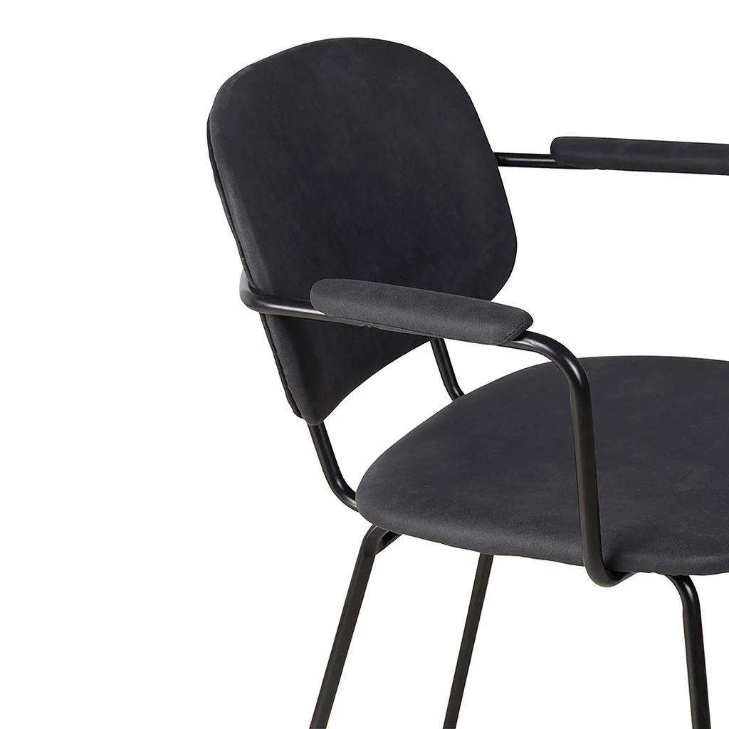Ce fauteuil de style rétro avec son revêtement douillet effet daim noir est parfait dans votre bureau ou autour de votre table à manger.