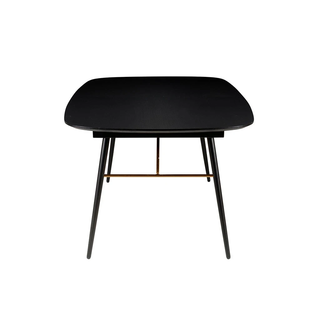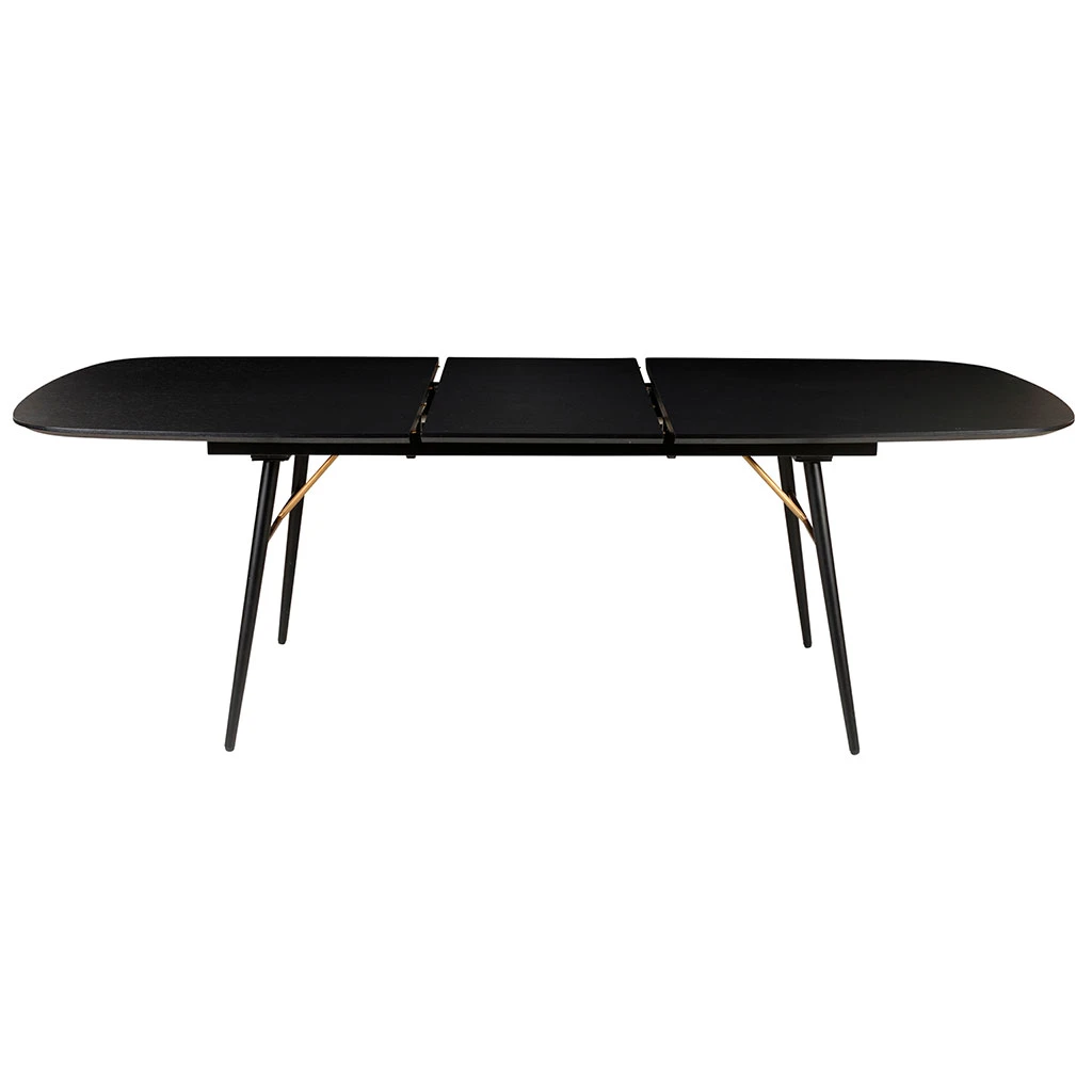 Plateau et allonge : placage chêne – peinture polyuréthane / Pieds : fer, peinture polyuréthane et acier chromé doré